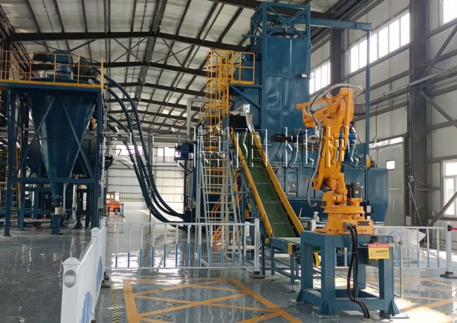 全自動(dòng)拆包機(jī)器人現(xiàn)場(chǎng),碳酸鈣機(jī)械手自動(dòng)破包設(shè)備
